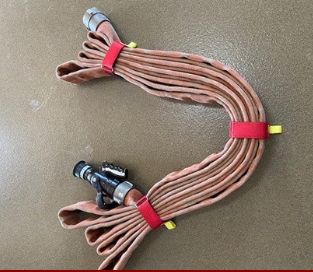 Individual hose strap to bundle 2 ½” hose. The strap utilizes heavy duty Velcro and a rectangle metal ring so it can be cinched tight around the hose bundle. It also features easy pull tabs for quick removal. The 2 1/2" hose strap can be used on hose bundles with a circumference of 12.5"-19".