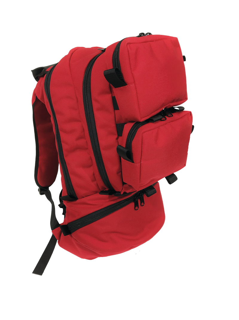 Our ASR/SAR backpack is a slim-tapered pack which contours for comfort and eliminates the bulky backpack when concealment is important or tight locations are encountered. This pack consists of 3 zippered pockets, capable of holding 8 Patient Treatment Kits, and two removable outer pockets for accessories.