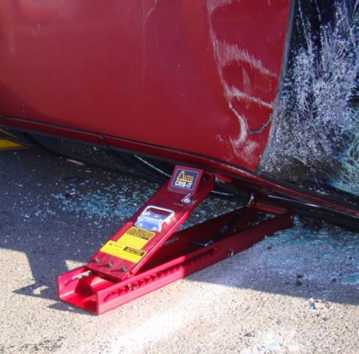 A one of a kind, automatic cribbing system that allows firefighters to "set it and forget it." Once deployed the crib will maintain contact with the vehicle through a piston actuated system that raises and locks in place as the vehicle weight changes through the removal of body parts common in extrication practices. Traditional cribbing loses surface contact with the vehicle as body parts are removed and the vehicle's suspension system compensates for the weight loss.