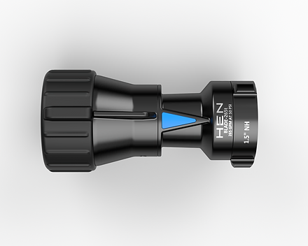 HEN adjustable smoothbore nozzles have the reach and penetration of traditional smoothbore nozzles along with the ability to switch to an in-line blade pattern. A simple quarter turn converts the solid tight stream into a solid in-line blade stream. Both stream choices deliver large droplet patterns at a constant gallonage.