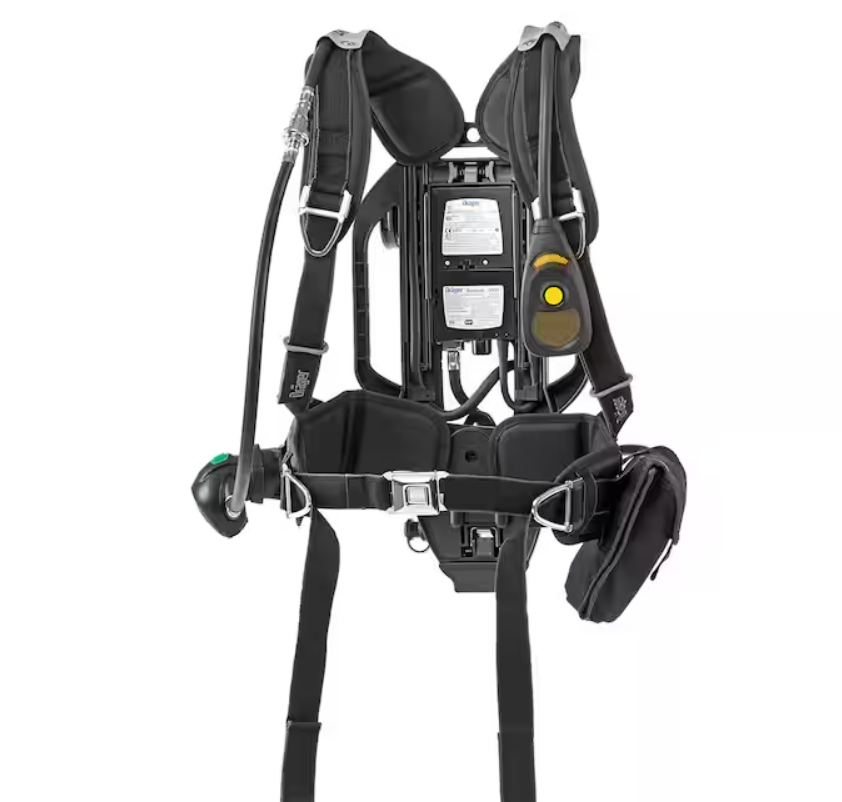 PSS 7000 – Premium comfort with adjustable backplate, pivoting waist belt, and enhanced padding. Features Dräger’s lock-and-load QuickConnect system for rapid cylinder changes, plus advanced monitoring options.