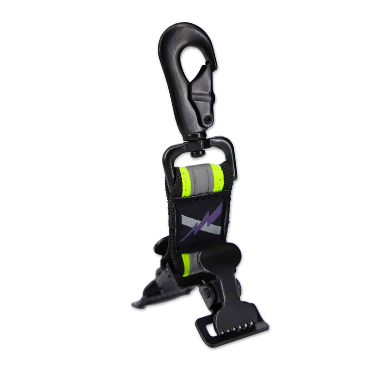 - [THE ORIGINAL AND BEST] – Lightning X originally designed the firefighter glove clip in 2008. Many have copied it, but none have our balistic nylon webbing, hand-stitched reflective tape, and specially tooled alligator clip design. Take a closer look at the copycat models and you’ll see the difference in quality. We have created a new dual version, with TWO unique alligator clips – designed for thicker cuffed firefighter gloves – it holds one glove on each clip, instead of both on one clip.
