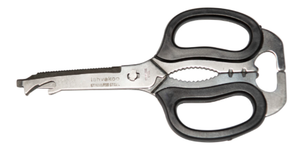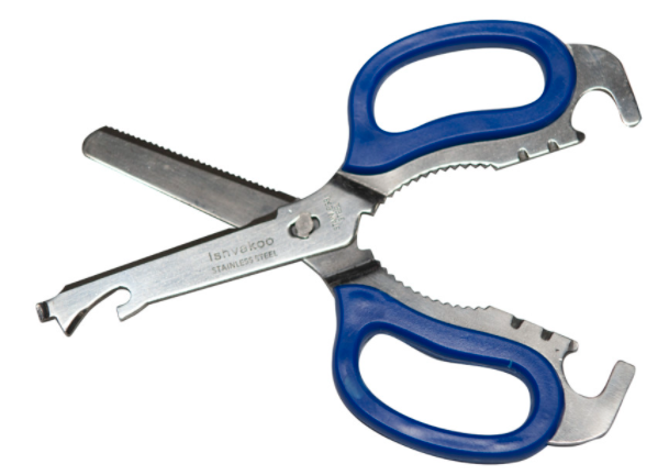 Eleven tools in one! Hardened stainless steel, 8” long. Cutting blades detach to accommodate handy lightweight saw.