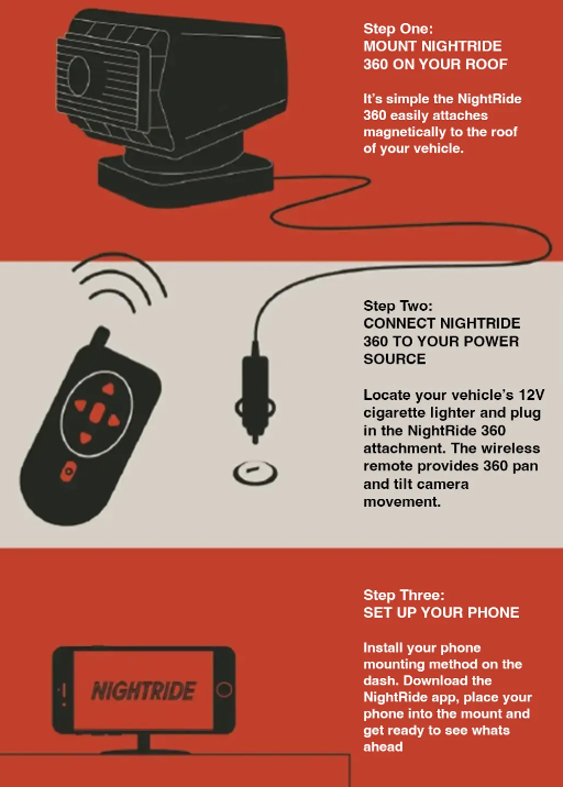 - Magnetic mount for quick and easy rooftop mounting, powered through cigarette lighter adapter