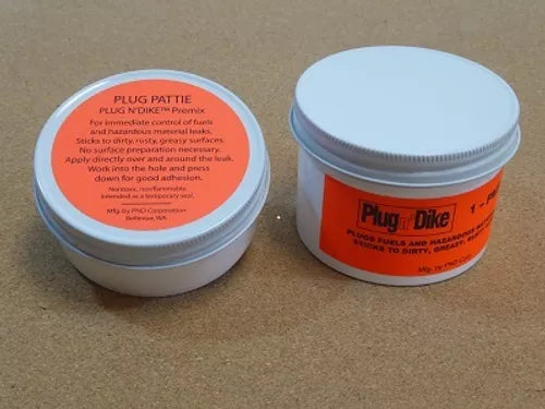 Plug N Dike is a nontoxic, nonflammable blend of bentonite clays and glycol mix.