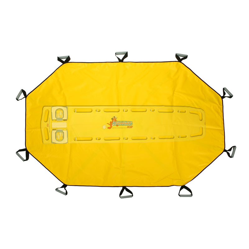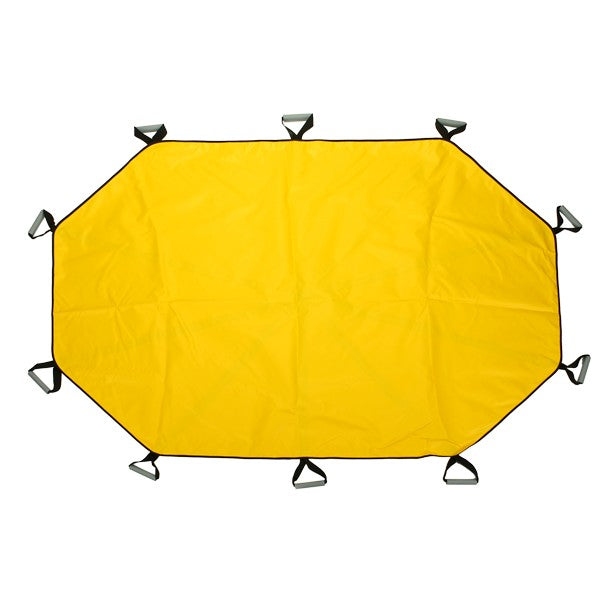 Constructed of two (2) layers of impervious 14 oz., nylon reinforced, vinyl that will not absorb body fluids. All weight bearing webbing straps cross through the middle of the device, where the patient’s weight is centered. The double stitched webbing design provides a better weight distribution while lifting and transporting. All webbing ends are box “X-ed” and bound over for additional strength. Storage bag is included.