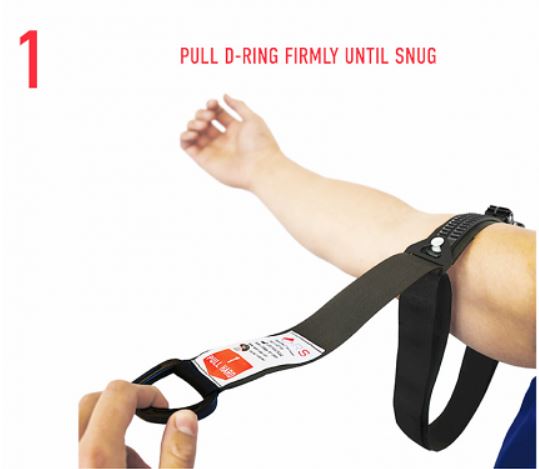 Three simple and fast steps set RapidStop® Tourniquet apart from the competition. Guided by instructions on the product, pocket-sized instruction cards and video format. Integrated instructions on the RapidStop® Tourniquet are included using stitched waterproof vinyl tags resistant to any wear and tear.