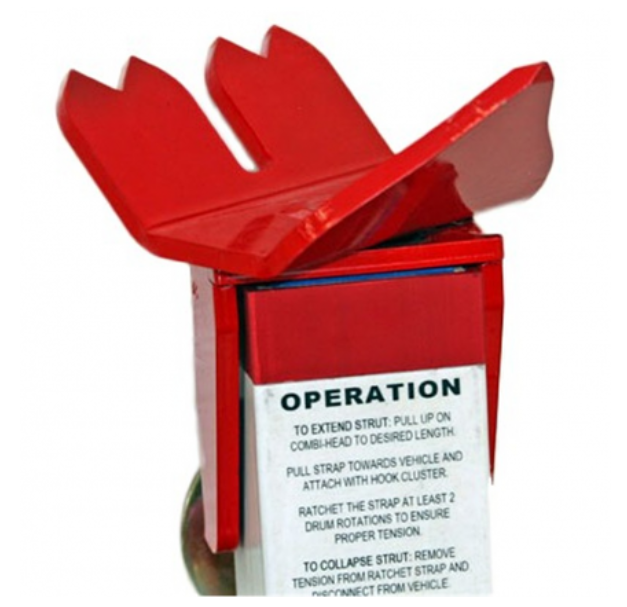 In limited manpower situations, the struts and cribbing can be easily carried to a vehicle with a small hydraulic tool.