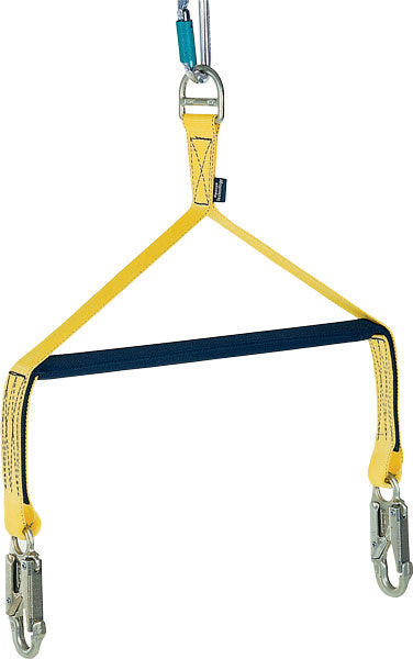 Lifting Bridle manufactured of 1 3/4" nylon webbing and forged steel snaps. This "Y" Lanyard unit attaches to shoulder lifting rings with industrial double locking snaps. No carabiners to lock.