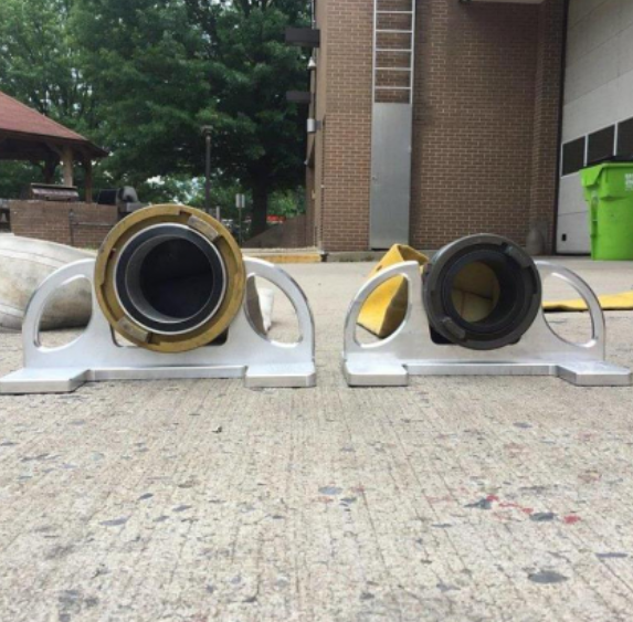 The Second Hands also enables a single firefighter to easy connect two hard sleeves by holding one sleeve stationary and off the ground so that the other can be easily threaded onto it.