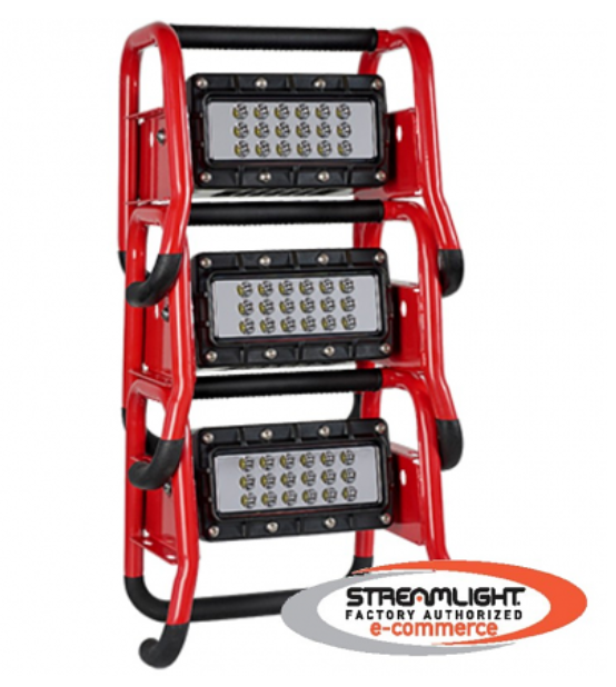 Turn to a higher power with the Portable Scene Light II. 18 LEDs produce 10,000 lumens to light up the entire scene. With zero deployment time, it features a compact footprint, 360° rotating head and it’s stackable for “light tower” capability with multi-level lighting. High-impact thermoplastic housing mounted in a virtually indestructible alloy steel frame. Hooked feet for hanging over doors, guard rails, fences, etc. The perfect scene light for marking exits, post fire investigation, fire ground clean-up, mobile triage center lighting, etc.