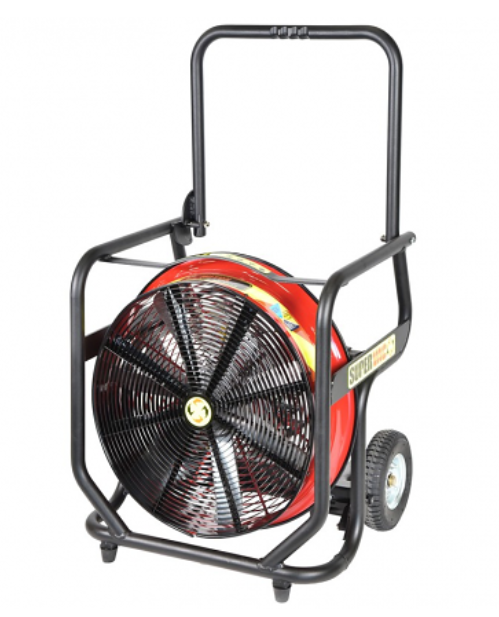 They feature a tough, tubular aluminum frame, full width handle, real rubber never-flat tires, 5-position tilt via the quick step pad, and the ability to easily attached ducting to the output.