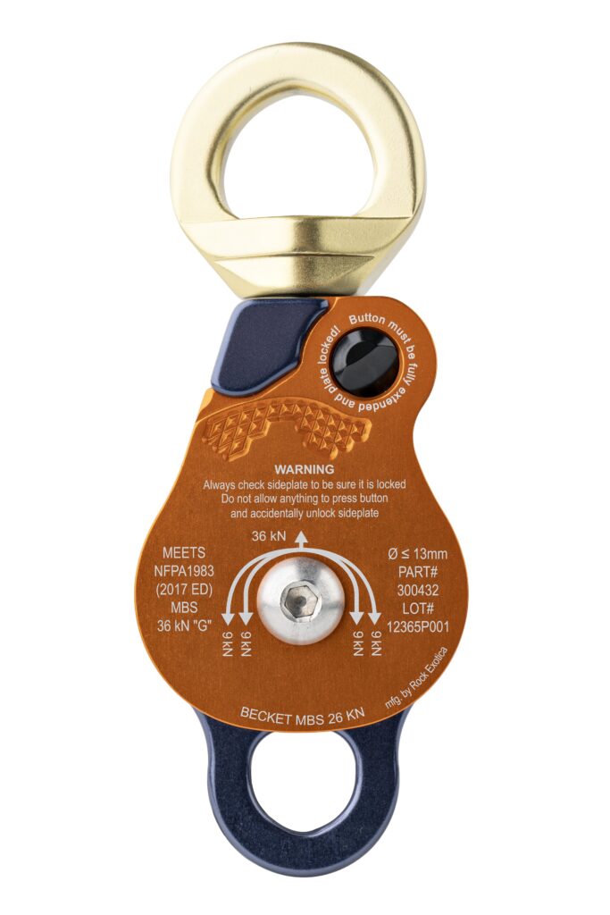This swivel double pulley is a useful addition to the equipment cache for any rescue or rope access operation.