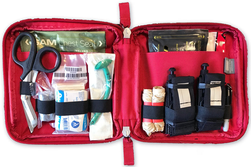 The TRAUMA CUBE™ PRO fully loaded includes: 2 Black SOFTT-W Gen 4 Tourniquets, 1 Celox Rapid, 1 H&H Thin H Bandage, 1 Valved Sam Chest Seal, 1 NAR S Rolled Gauze, 1 28Fr Nasopharyngeal Airway with lube, 1 Rescue Hypothermia Blanket, 1 Combat Medic Tape, 1 7.5" EMT Shears with Black Handle, 1 Mini Sharpie Marker, and 2 Rolled Pairs of XL Nitrile Gloves.