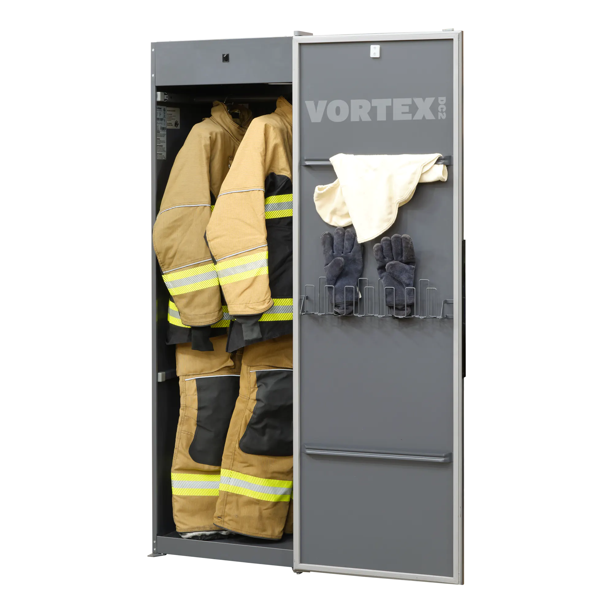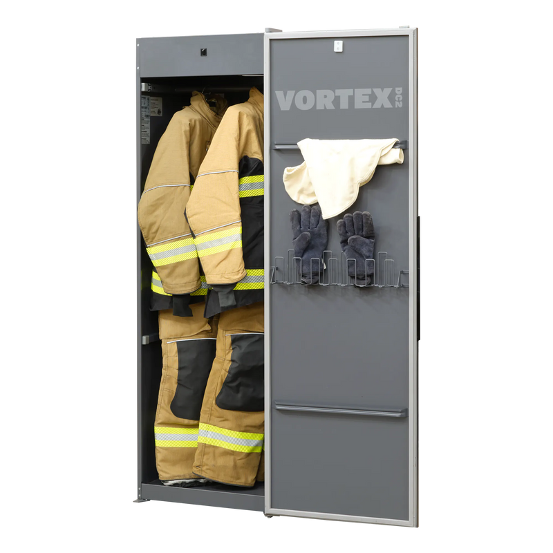 Increase efficiency and preserve the integrity of high-performance flame resistant fabrics with the Vortex DC2 Drying Cabinet. Versatility is at the core of the Vortex DC2, which accommodates turnout gear, boots, gloves and hoods to provide a tailored solution for properly drying personal protective apparel and more. The Vortex DC2 boasts temperature tracking sensors, pre-programmed cycles and a standard 110v connection ensuring simple set up and operation.
