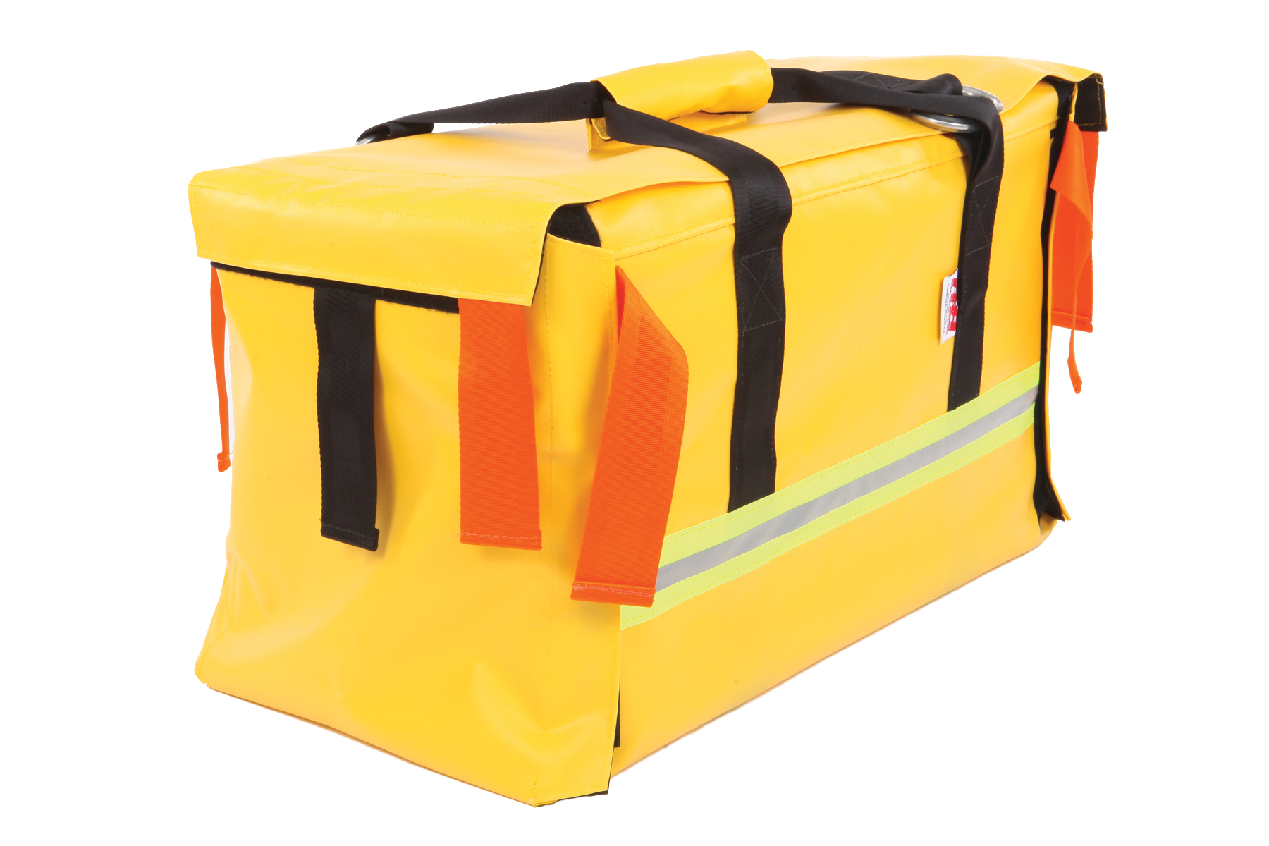 Easily pack and carry 300’ of 1” forestry hose. 3 removable divided internal compartments and rigid sidewall and base reinforcements keep hoses organized and ready to quickly deploy. This is made using 22 oz. vinyl, is available in yellow and weighs 68 oz. The overall dimensions are 25”L x 12”W x 15”H.